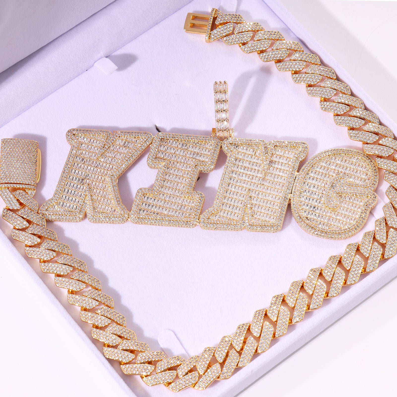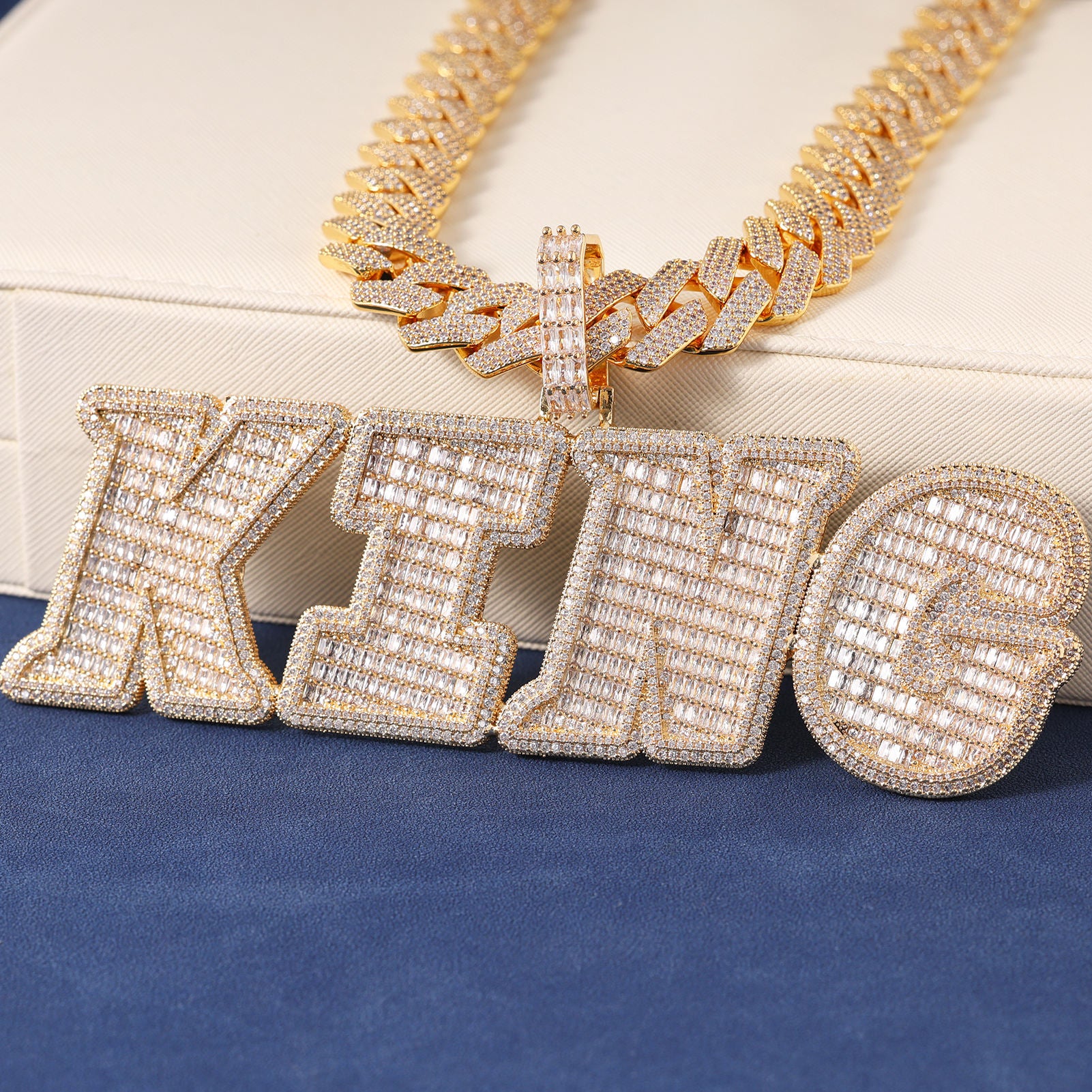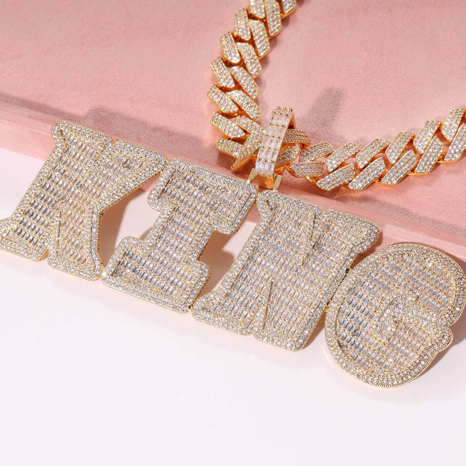 Fashion Italic Large Ladder Square 5A Zircon Diamond Letter Pendant – Sparkling Hip Hop Name Custom Necklace by ICE STONE