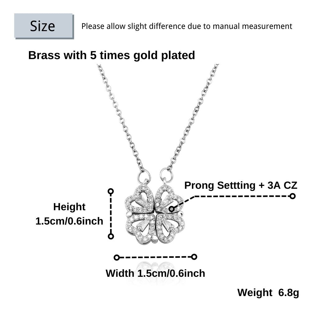 Crafted from brass plated with 18K gold, this necklace features a claw setting that securely holds each round brilliant cut zircon, allowing it to sparkle with brilliance. The pendant size of 1.5cm x 1.5cm makes it a subtle yet elegant choice for any occasion, from anniversaries and weddings to parties and gifts.