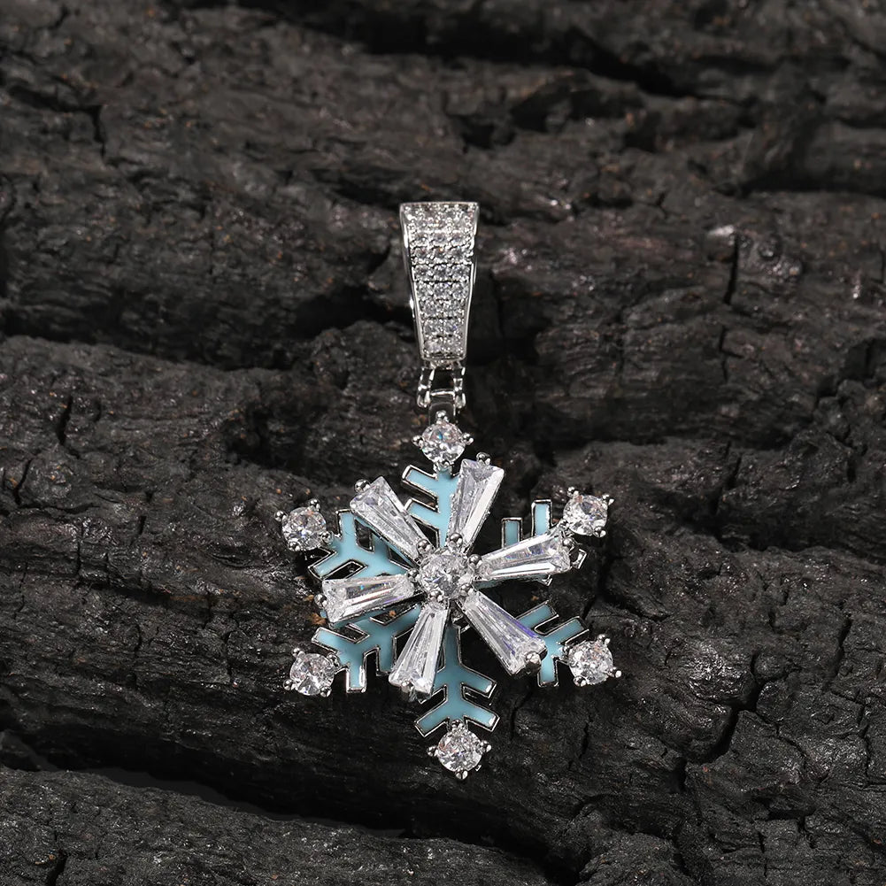 Luminous Snowflake Pendant Necklace | Twinkle Snow Pendant | Winter Collection Bling Hip Hop Jewelry