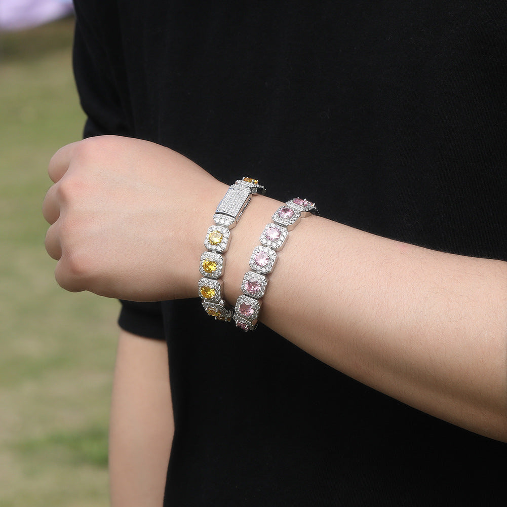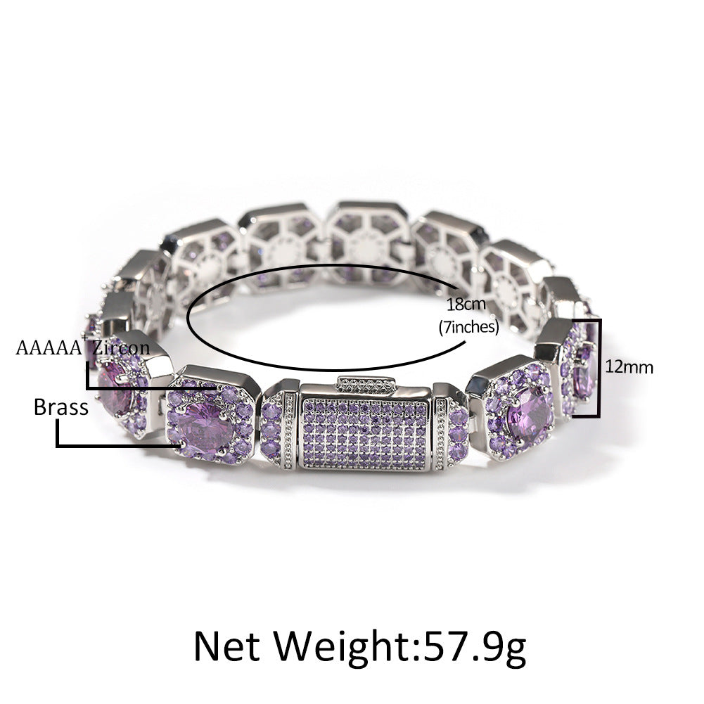 The bracelet is adorned with colorful, shining cubic zirconia stones that provide a dazzling, eye-catching effect, adding the right touch of luxury to any outfit. Designed for both men and women, this bracelet is suitable for a variety of occasions including parties, weddings, engagements, or simply to add a unique touch to your hip hop jewelry collection.