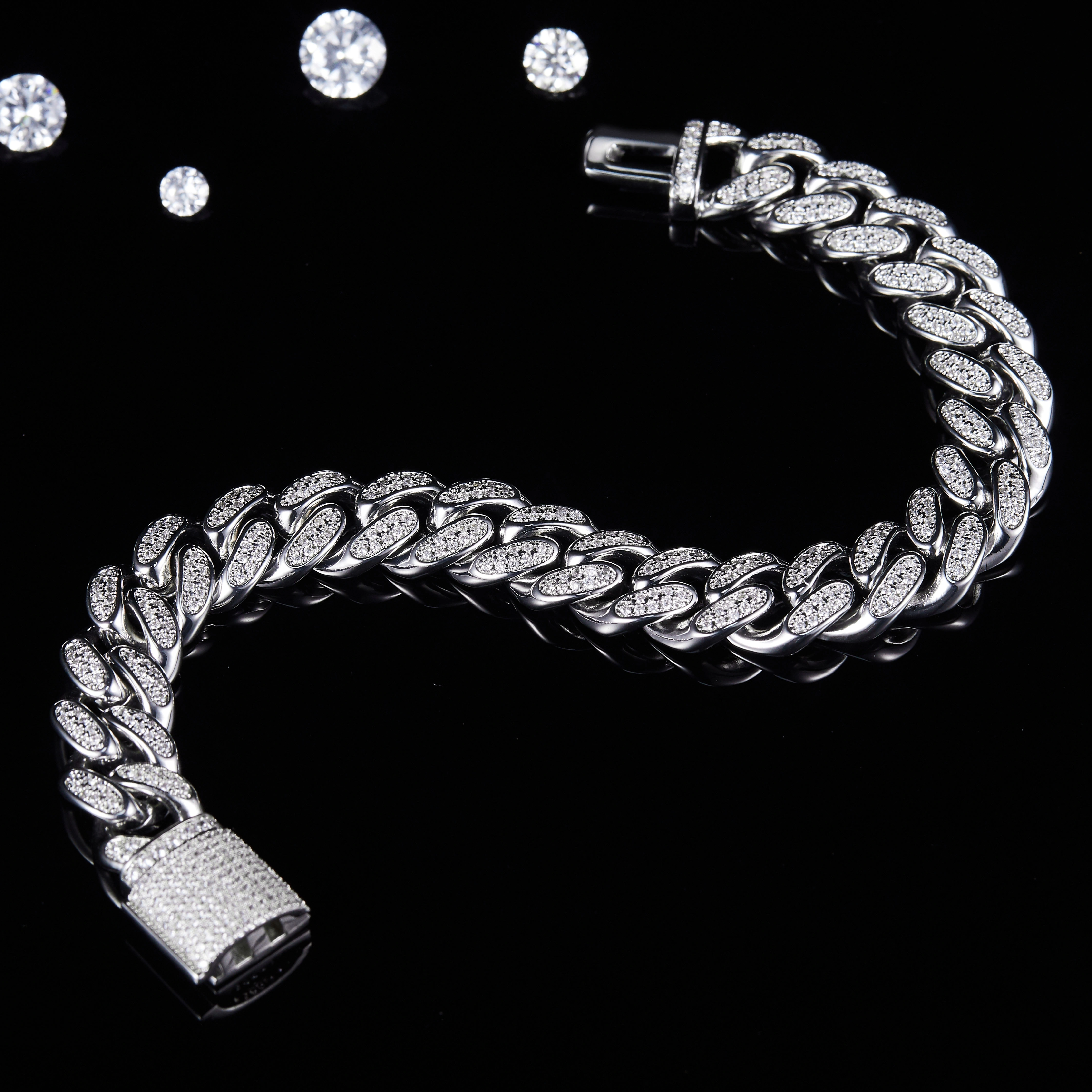 Engineered with micro-insert technology, each stone is securely set to give the illusion of seamless brilliance, while the hefty 12mm width commands attention from every angle. Whether you're rocking it at the club, on stage, or gifting it for a special moment, this moissanite Cuban chain blends hip-hop attitude with luxury craftsmanship.