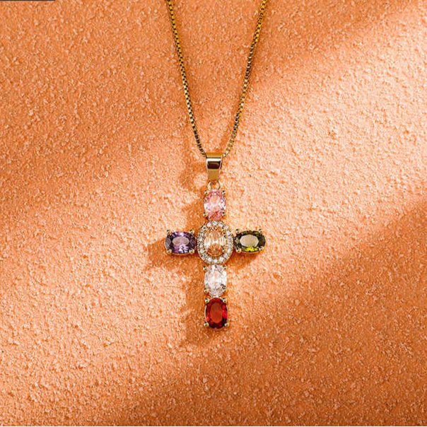 Step up your jewelry game with the Luxury 6 Colored Oval Zircon Cross Pendant Necklace, designed to make a bold statement. Featuring a stunning micro-pave design and 5A cubic zirconia stones, this pendant is available in multiple 18K gold, white gold, or rose gold plated finishes, offering both elegance and durability. The 6-colored oval zircon stones add a unique pop of color, making this cross pendant the perfect blend of luxury and hip hop style.