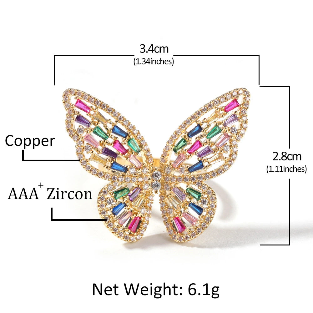 The ring is perfect for those who love making a bold, sophisticated fashion statement. Its butterfly design, coupled with the elegance of CZ stones, creates a luxurious and eye-catching piece that will never go unnoticed.
