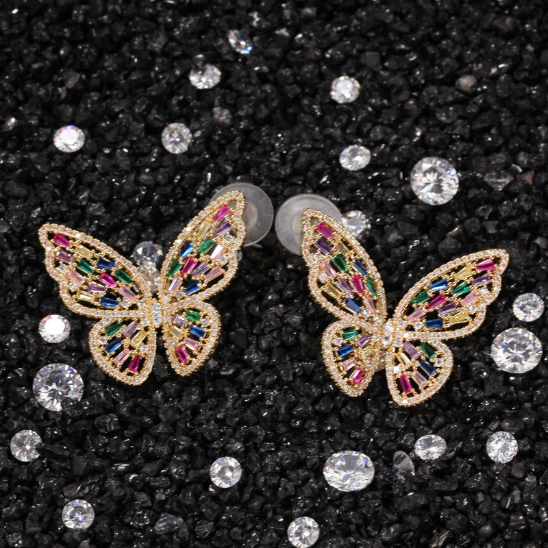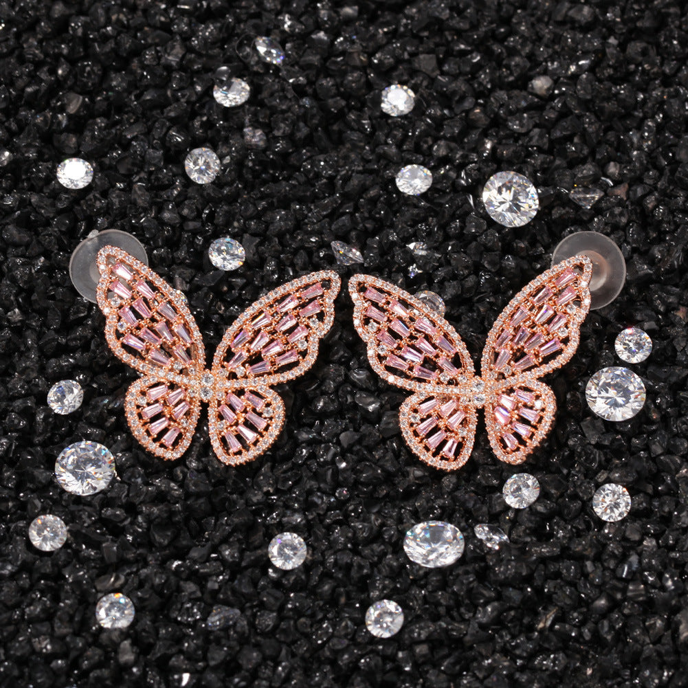 Design Style: Butterfly, Big Cubic Zircon Stud Earrings