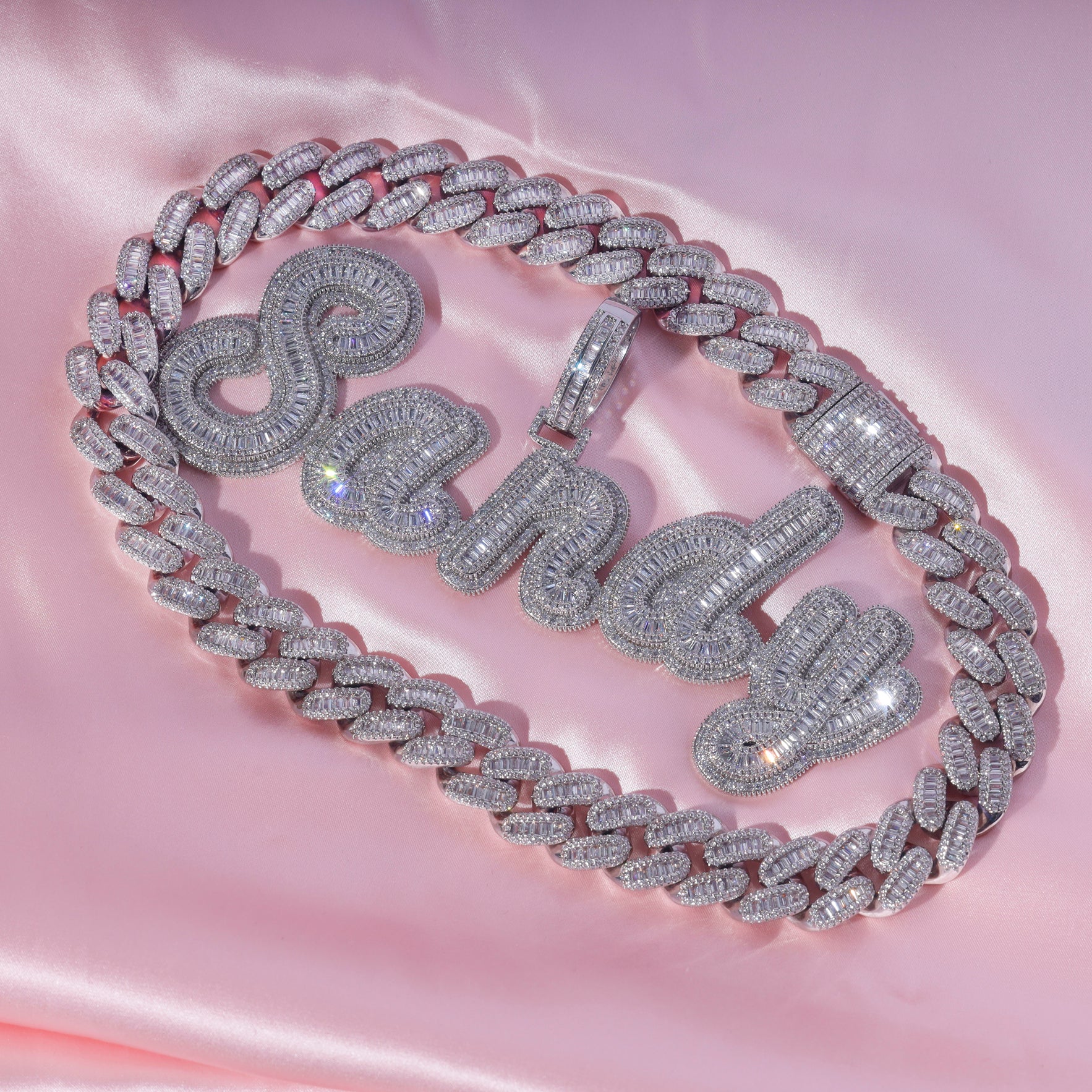 Make a statement with the Luxury Double Layer Cursive Letter Diamond Pendant Necklace — a fully customizable iced-out piece that brings high-end hip-hop style to the forefront.