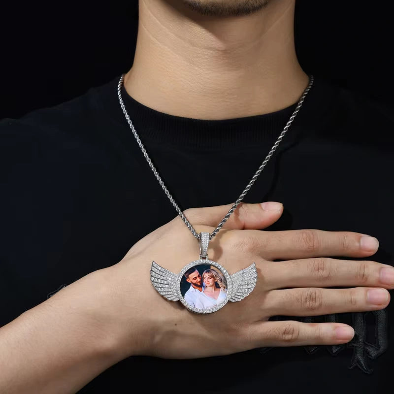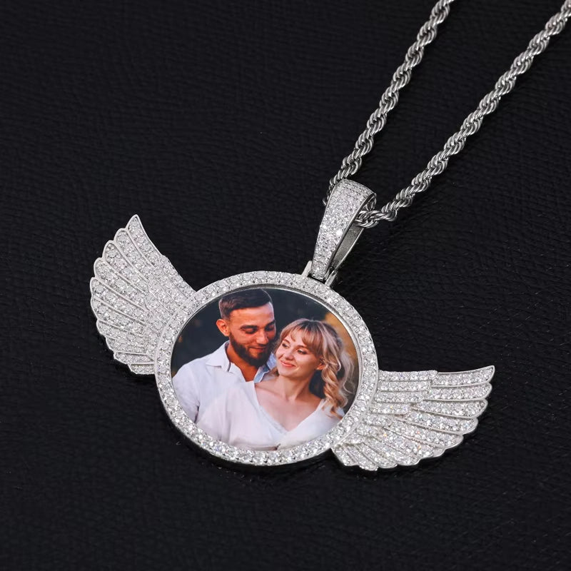 Luxury Gra Certificate VVS D Moissanite Pendant Sparkling 925 Sterling Silver Custom Photo Circle Wings Charm Pendant Jewelry
