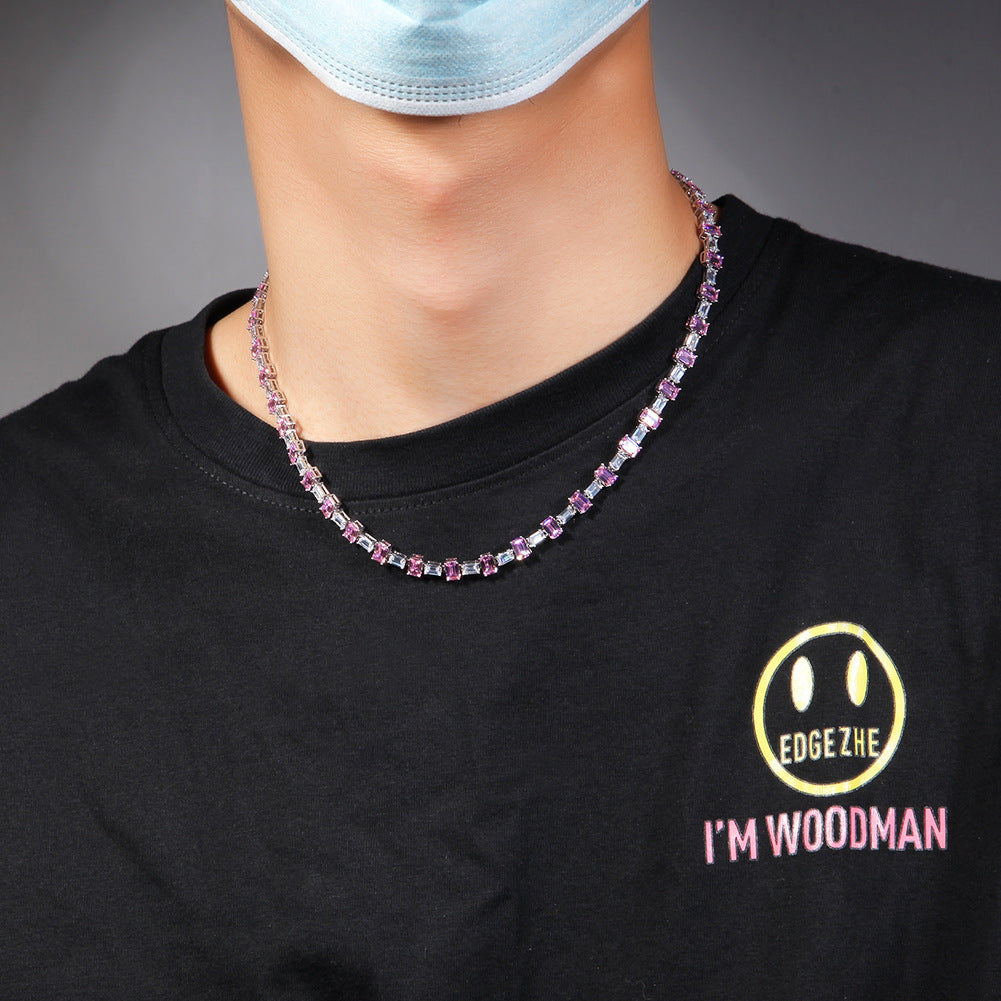 Fashion Luxury Lilac Colour Purple CZ AAA Zirconia Link Chain Hip Hop Jewelry Wholesale for Men and Women As a Gift