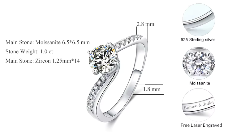 1.0 Carat Moissanite Engagement Ring – 925 Sterling Silver Luxury Wedding Jewelry for Women