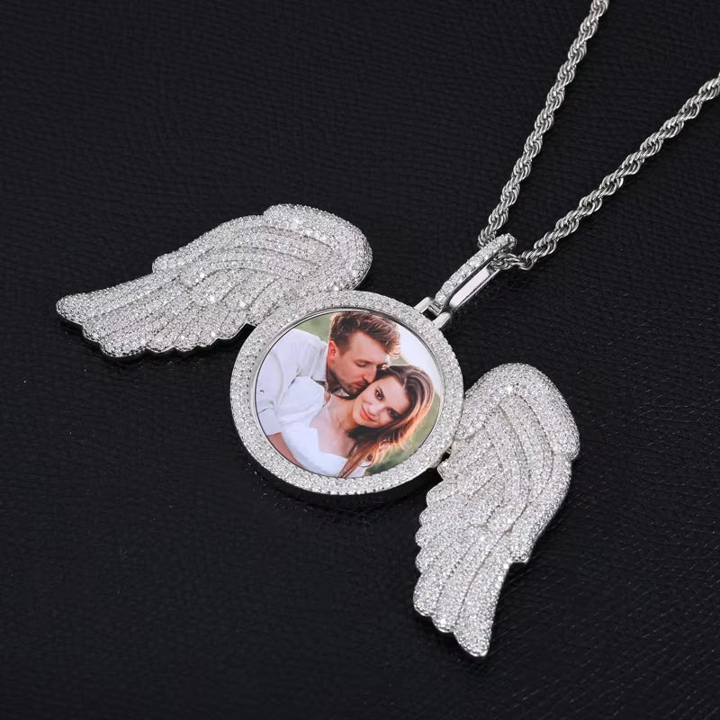 Luxury Ready to Ship 925 Sterling Silver VVS D Moissanite Picture Pendant Iced Out Custom Photo Big Circle Wings Pendant Jewelry