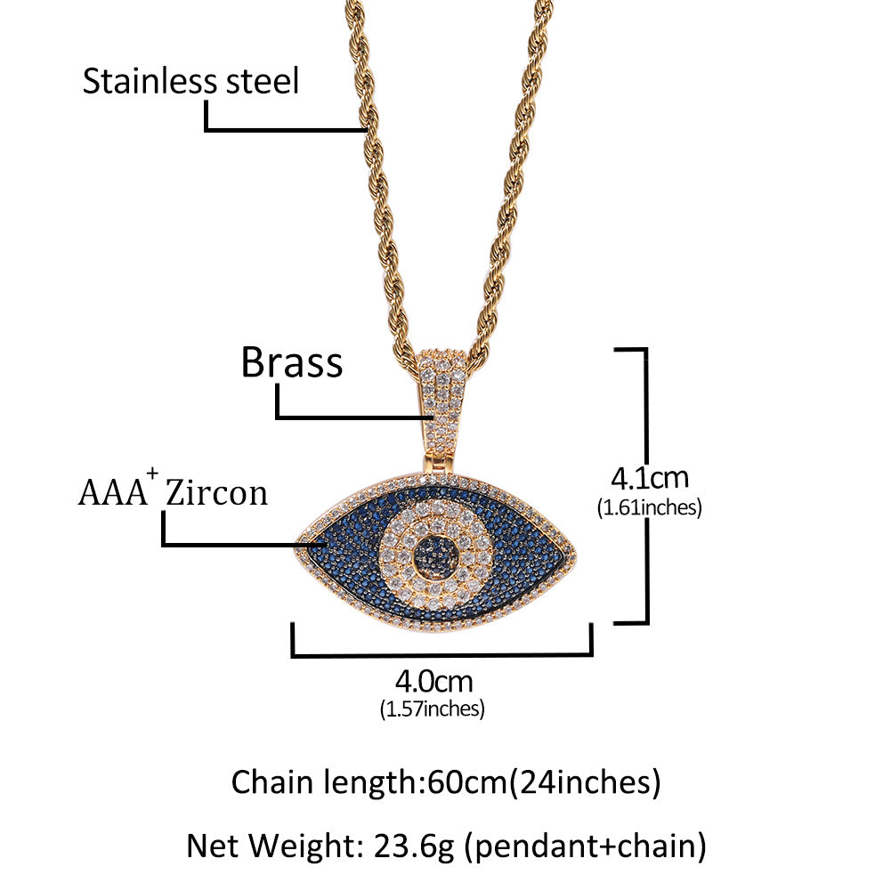 Keep all eyes on you—and ward off the bad ones—with this bold Mixed Color Evil Eye Pendant. Drenched in vivid zircon stonesand finished with 18K Gold or White Gold plating, this piece is a fusion of ancient symbolism and modern street style. The colorful eye design brings personality and energy, making it a standout addition to any hip hop jewelry collection.