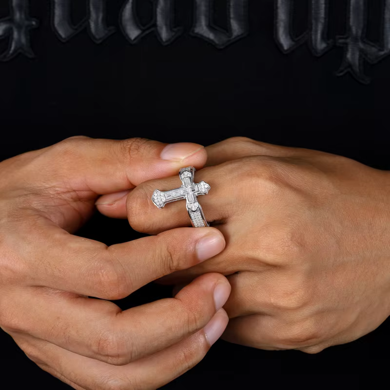 Fashion Moissanite Cross Ring – 925 Sterling Silver Baguette Diamond Iced Out Hip Hop Jewelry for Men by ICE STONE