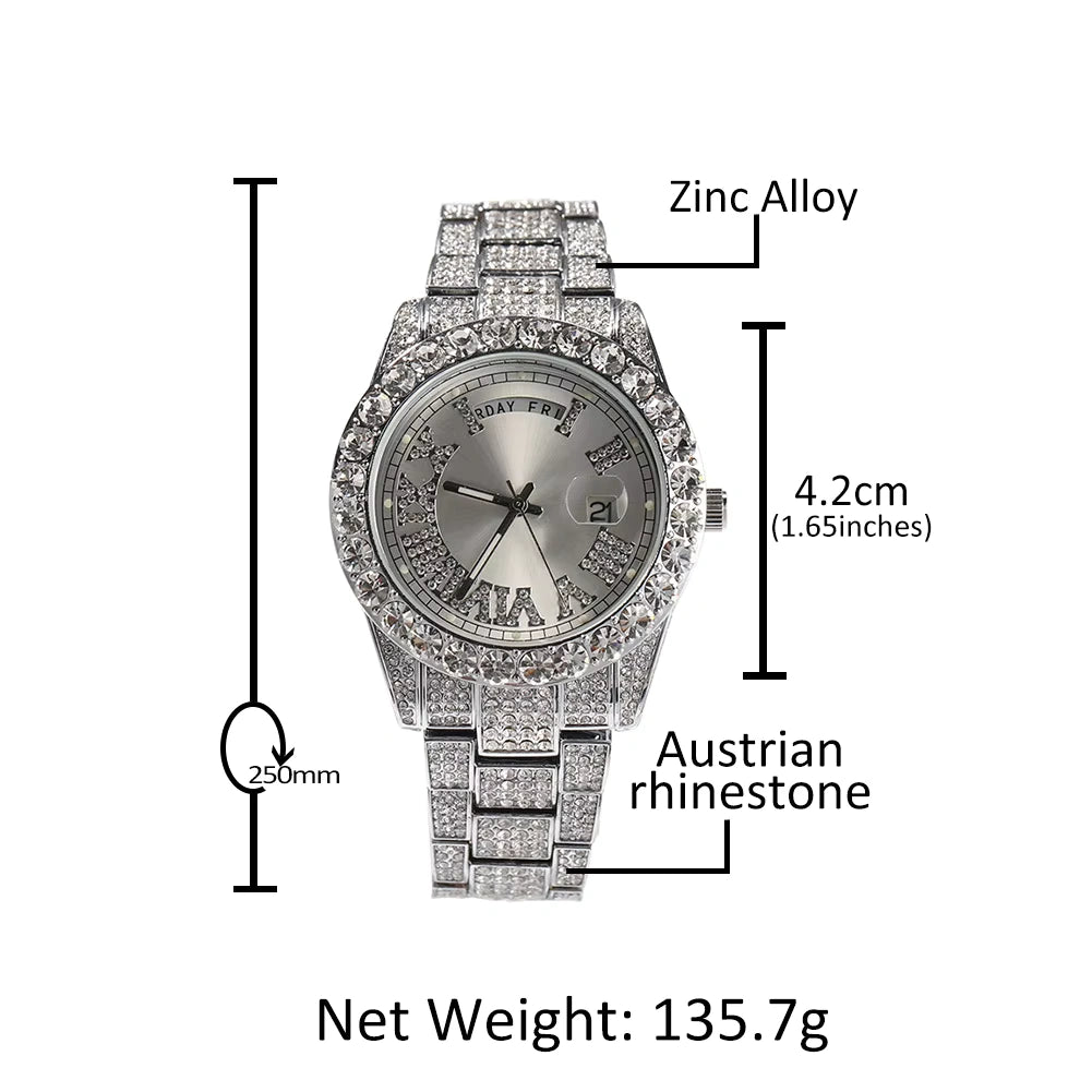 New Hip Hop Fashion Watch Shiny Diamond Watch Men Silver Gold Multicolor Dial Watch Alloy Strap Wholesale