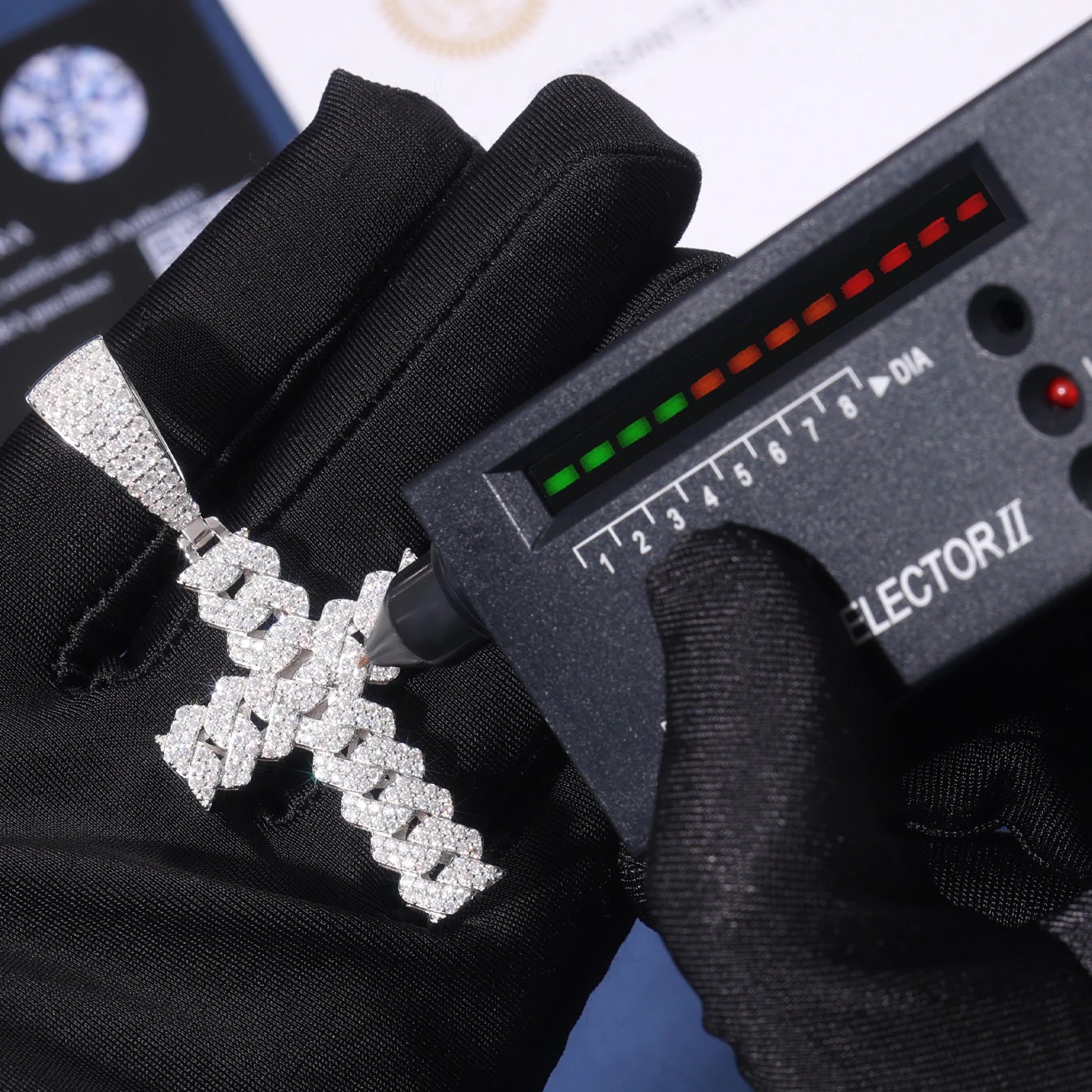 Step into the spotlight with the ICE STONE Cross Pendant, a meticulously crafted piece that combines streetwear energy with elegant craftsmanship. Made from high-purity 925 sterling silver and paved with two rows of dazzling VVS D oval-cut Moissanite diamonds, this iced-out pendant is engineered to impress from every angle.