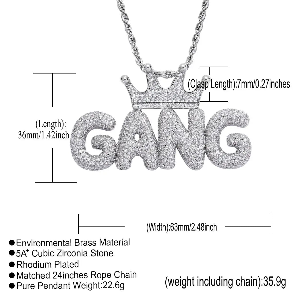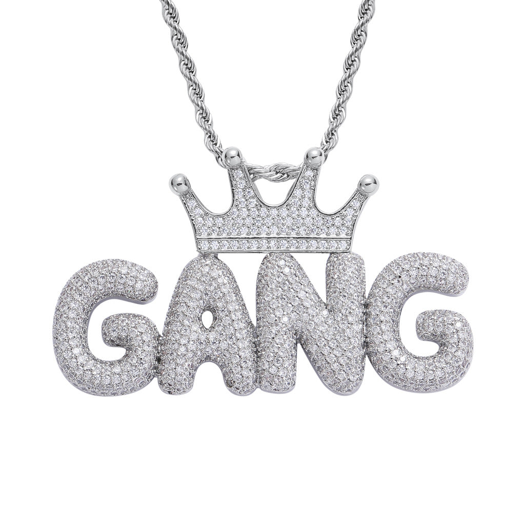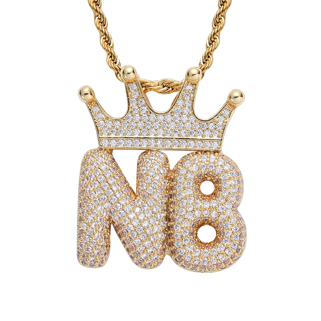 Introducing the Hot Selling Personalized Crown Bubble Letter Necklace — the ultimate in custom, iced-out jewelry. This stunning pendant features bold, bubble-style letters adorned with sparkling AAA zircon stones, giving it a unique, blinged-out look. The pendant also includes a regal crown design, adding a touch of royalty to your personalized necklace. Perfect for making a statement or gifting a one-of-a-kind piece, this necklace shines with both style and luxury.