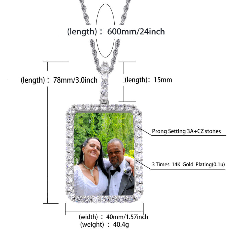Keep your loved ones close with the Newest Personalized Photo Pendant Necklace—a heartfelt piece designed to hold treasured memories in dazzling style. Crafted with brass and plated in luxurious finishes like 14K gold, platinum, or rose gold, this custom photo pendant is fully iced out with brilliant cubic zirconia for that perfect hip hop sparkle.