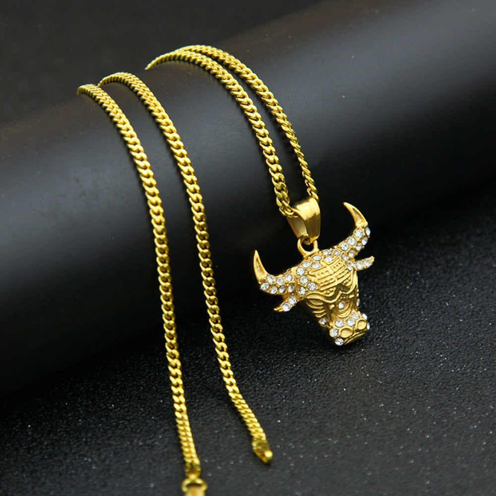 Taurus Bull Head Pendant Necklace – Iced Out Hip Hop Ox Charm Chain for Men & Women