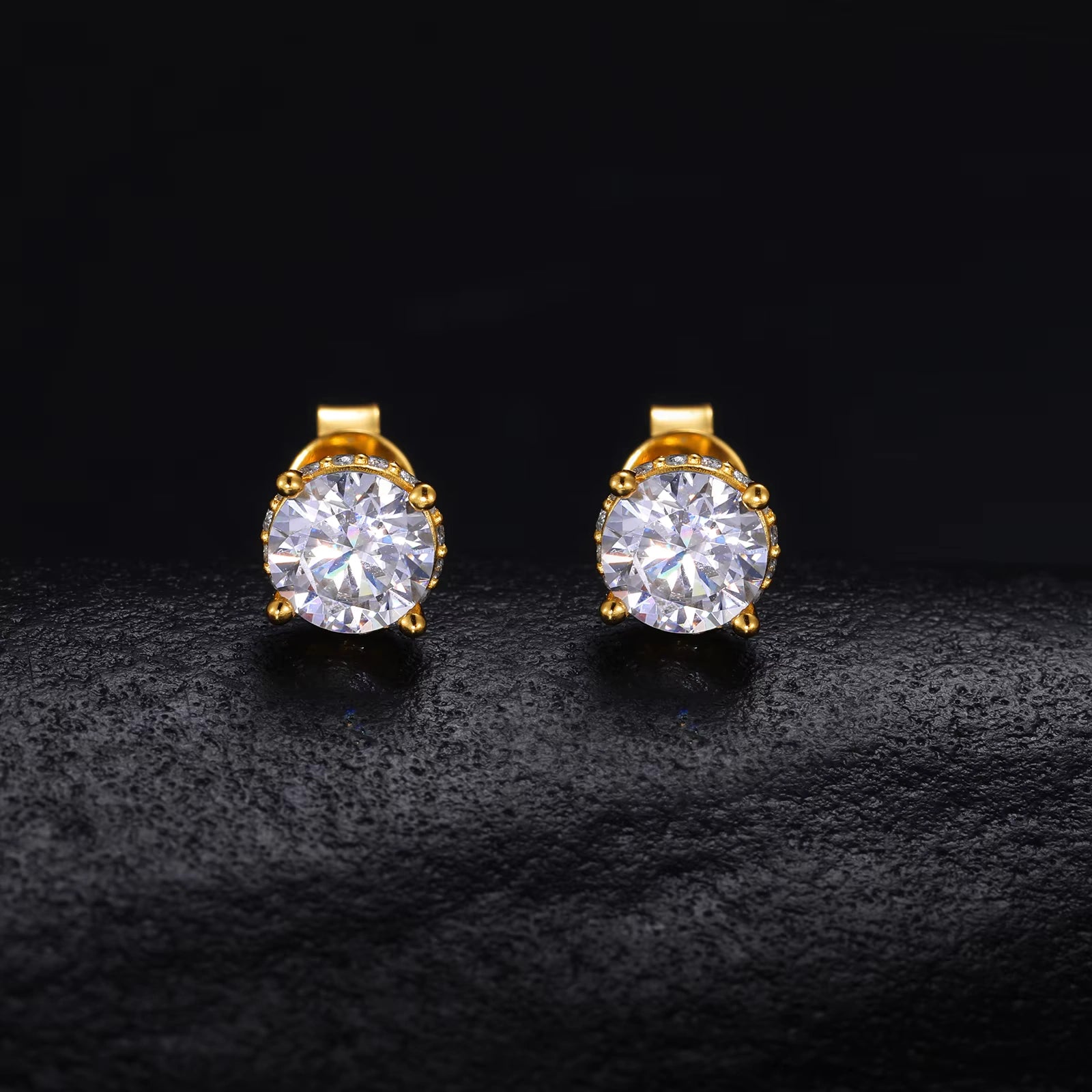 Made with 92.5% pure silver and available in rich gold or sleek white gold plating, each earring is claw-set to ensure long-lasting sparkle and security. GRA-certified moissanite stones radiate diamond-like fire, making this the perfect everyday luxury piece for men and women alike.