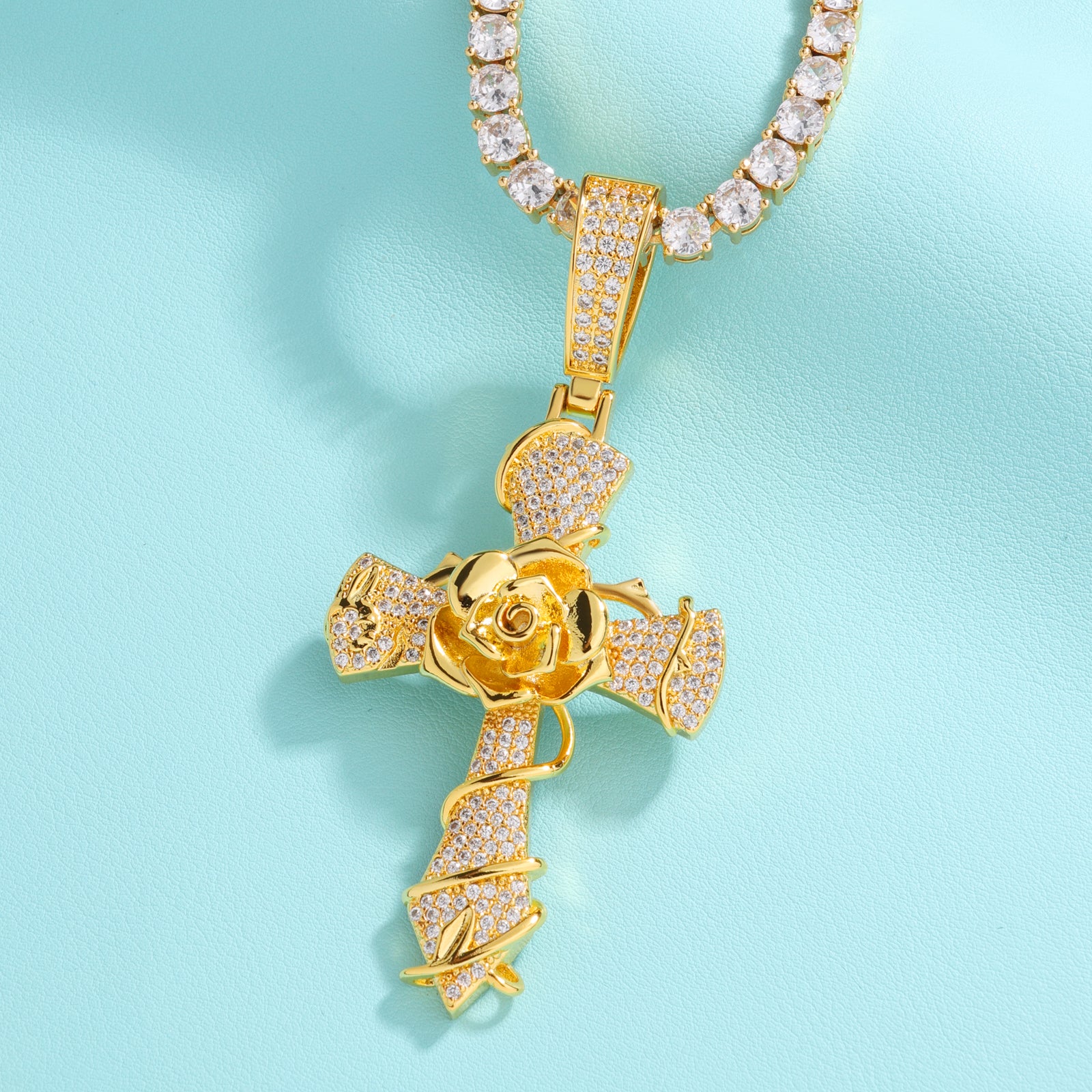 New Design Rose Cross Pendant – Christian Hip Hop Jesus Necklace by ICE STONE