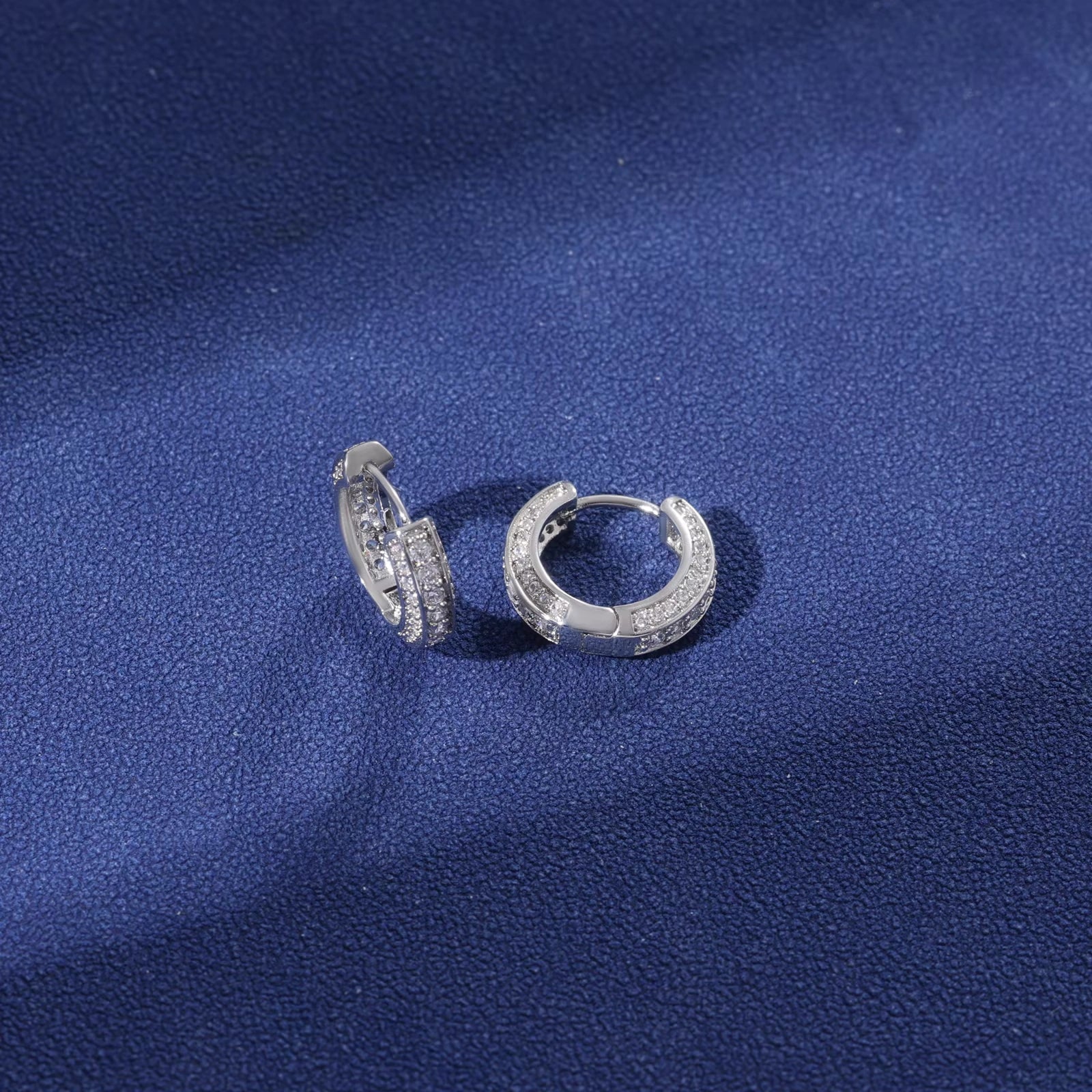 New Round Shape Zirconia Three Rows of Diamond Set Earrings Luxury Sparkle Bling Small Circle Hoop Earrings for Women