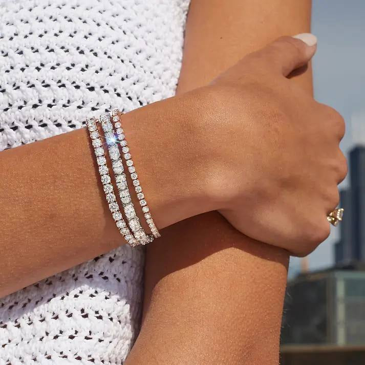 ICE STONE Classic Spark Tennis Bracelet – 3mm/4mm/5mm 5A Zircon in Gold & White Gold