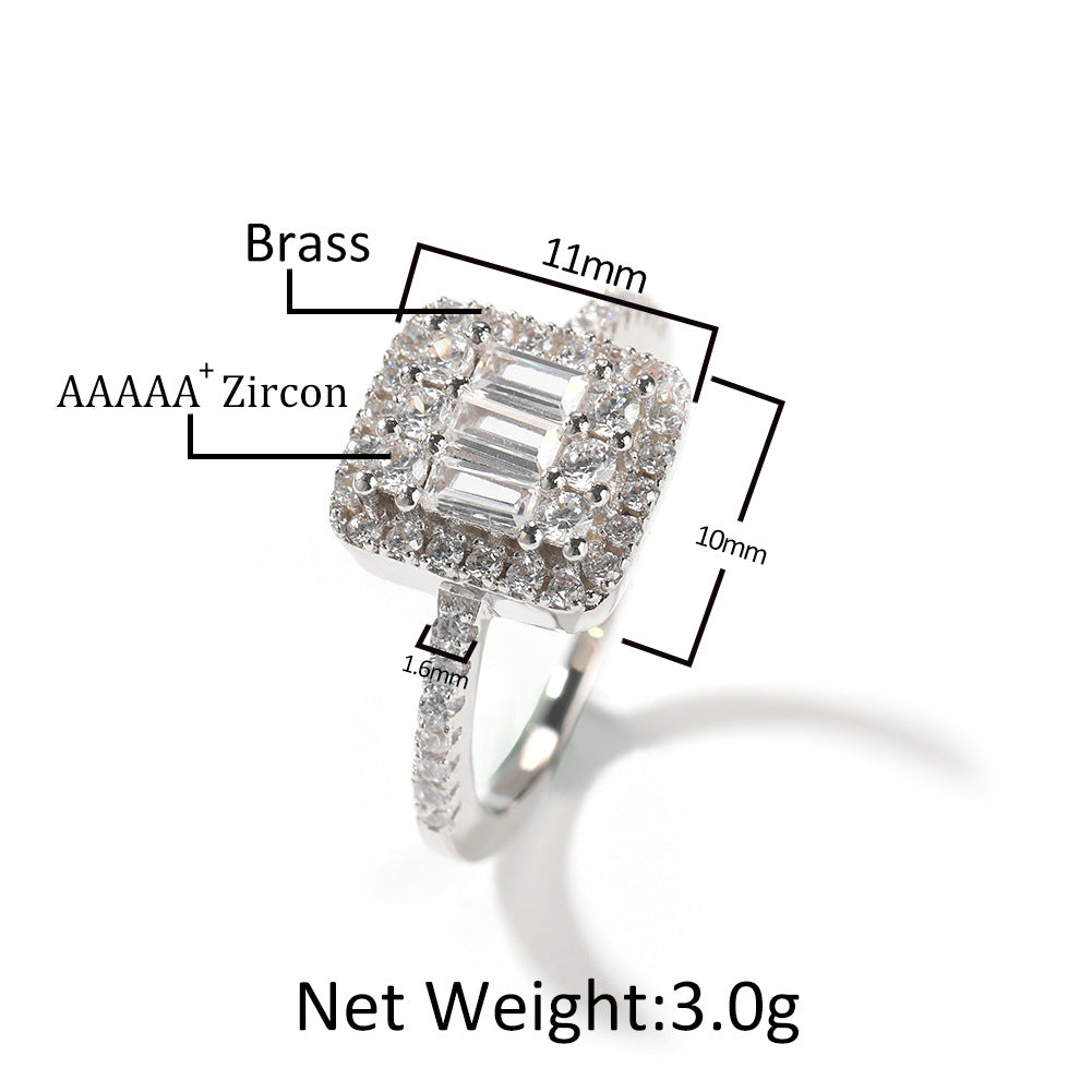 Fashion Square Baguette CZ Ring | Iced Out Simple Design Gold Plated Engagement Ring for Women