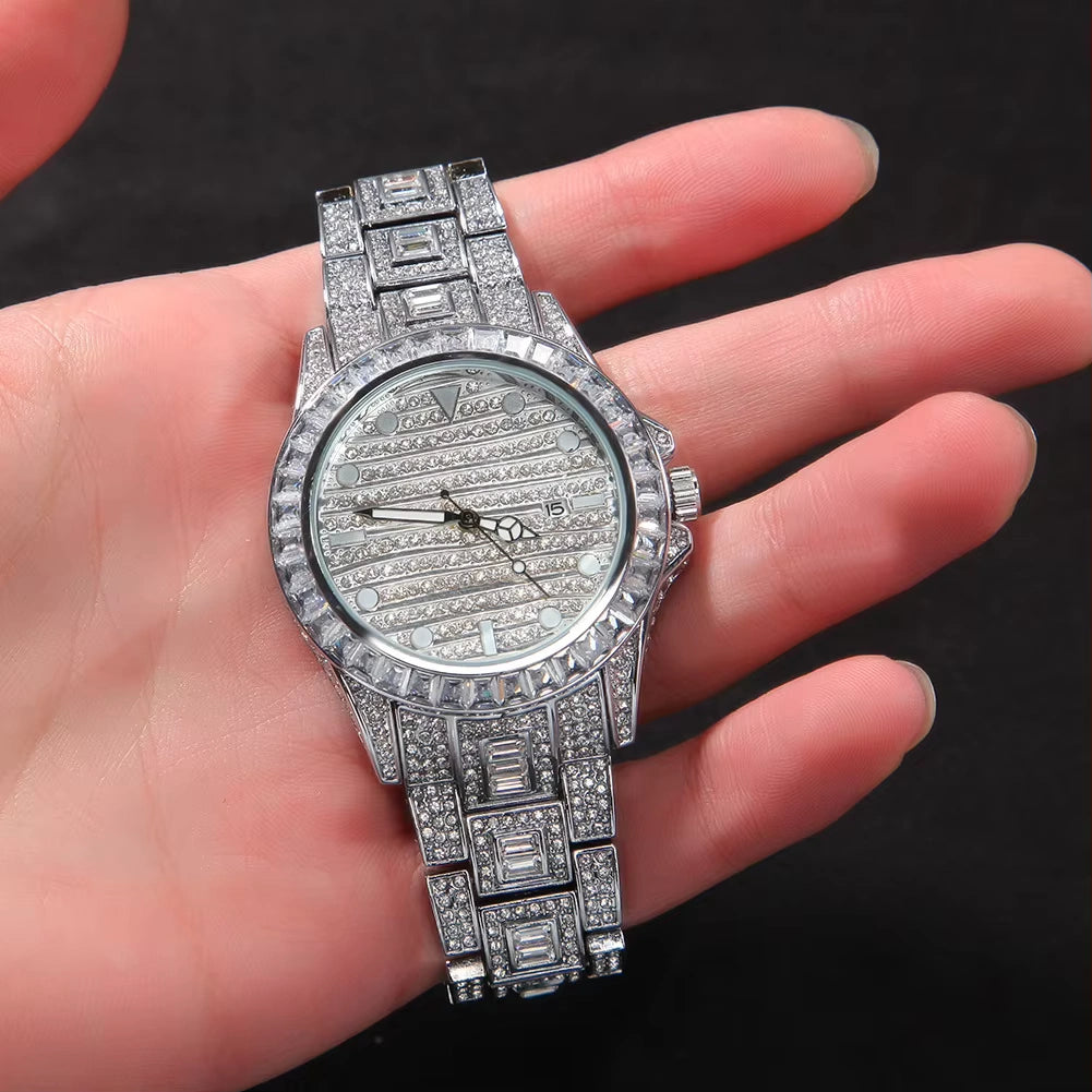 Elevate your wristwear with this dazzling iced-out hip hop watch — a perfect blend of bold luxury and street style.