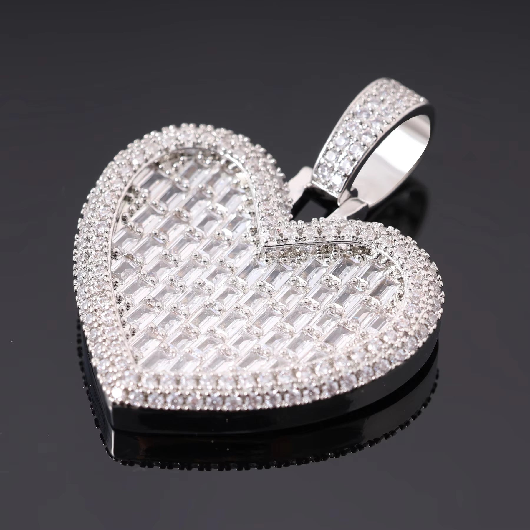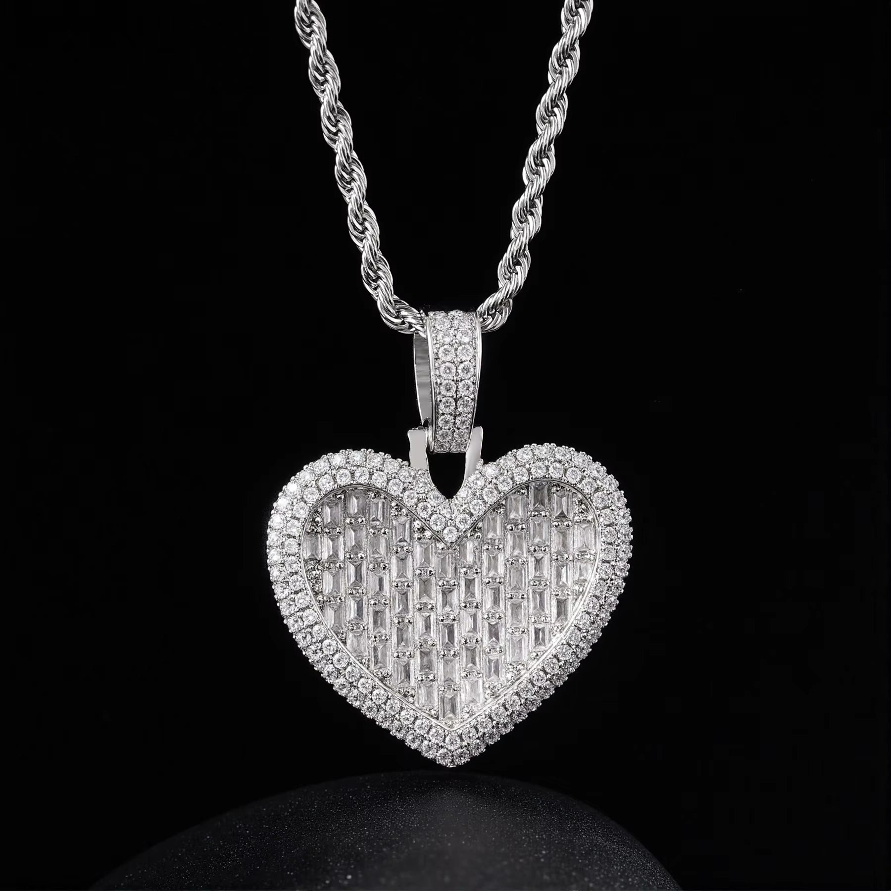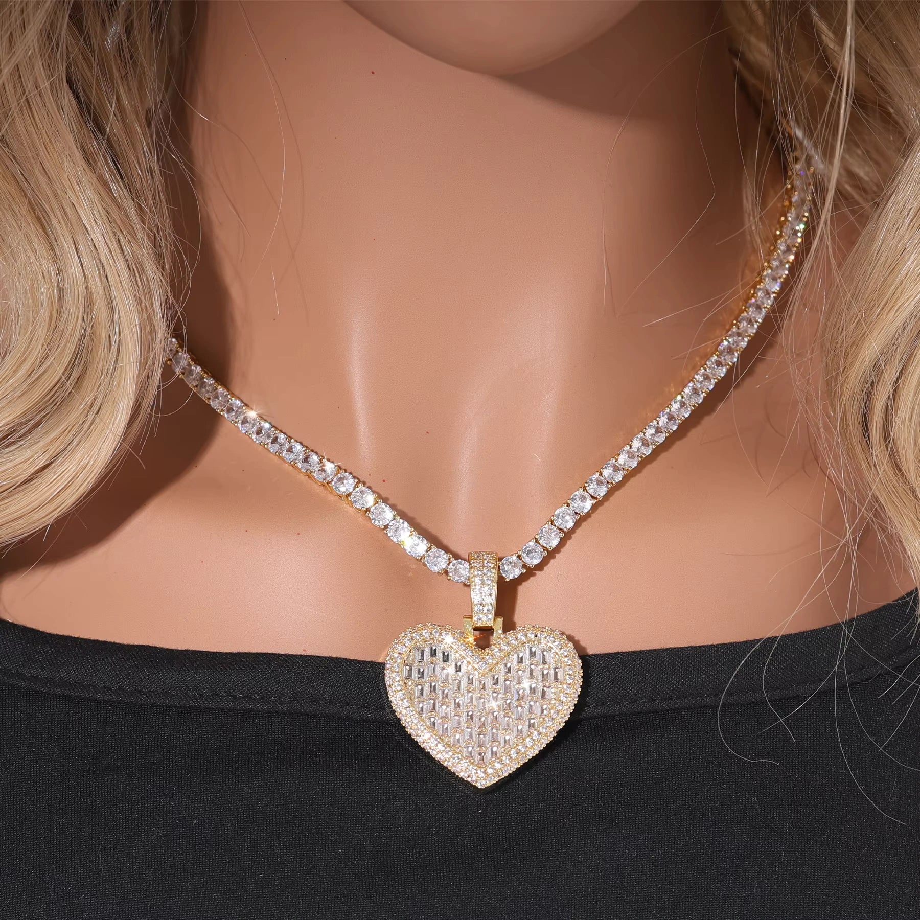 Trendy Heart Baguette CZ Pendant Necklace Iced Out Bling Rectangle Cubic Zirconia CZ Heart Shaped Pendant for Women in Stock