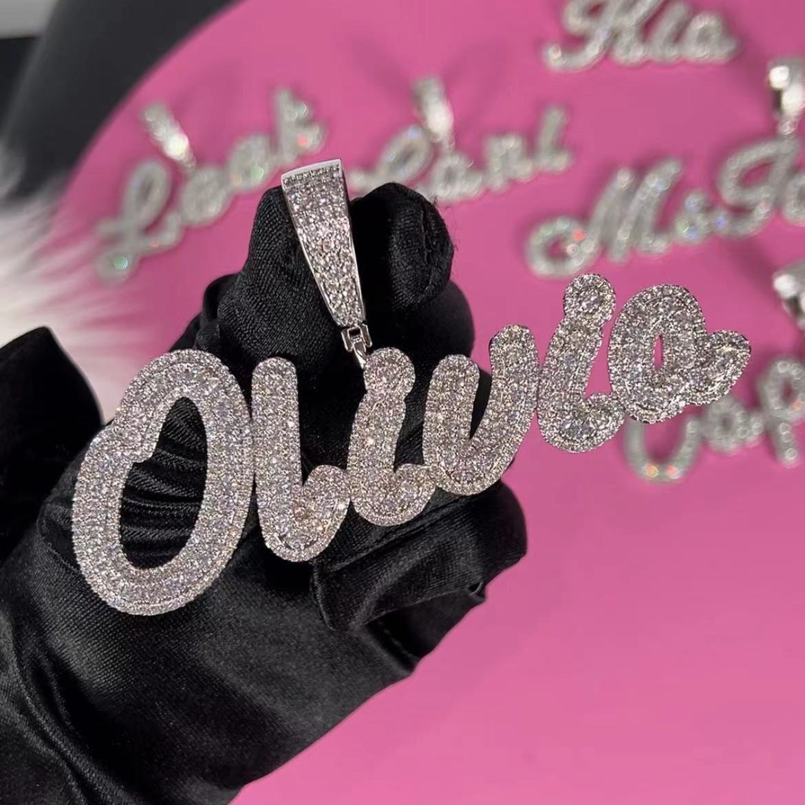 Make your name shine in style with the Custom Brush Cursive Name Pendant by ICE STONE — a fresh take on hip-hop jewelry with smooth cursive flair and stunning two-tone plating. Designed for kids and trendsetters alike, this personalized necklace delivers standout shine with AAA zircon stones set in a classic oval cut using precision micro-insert technology.