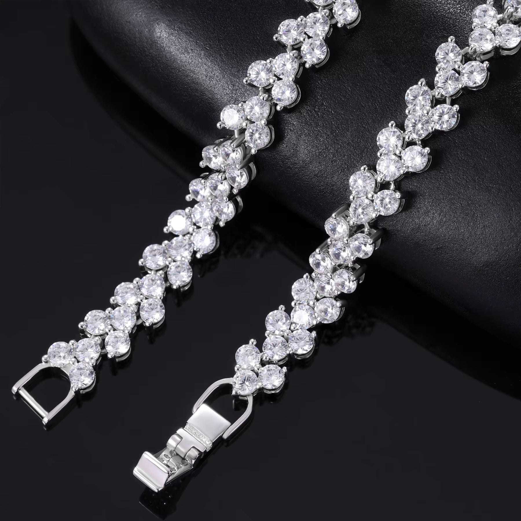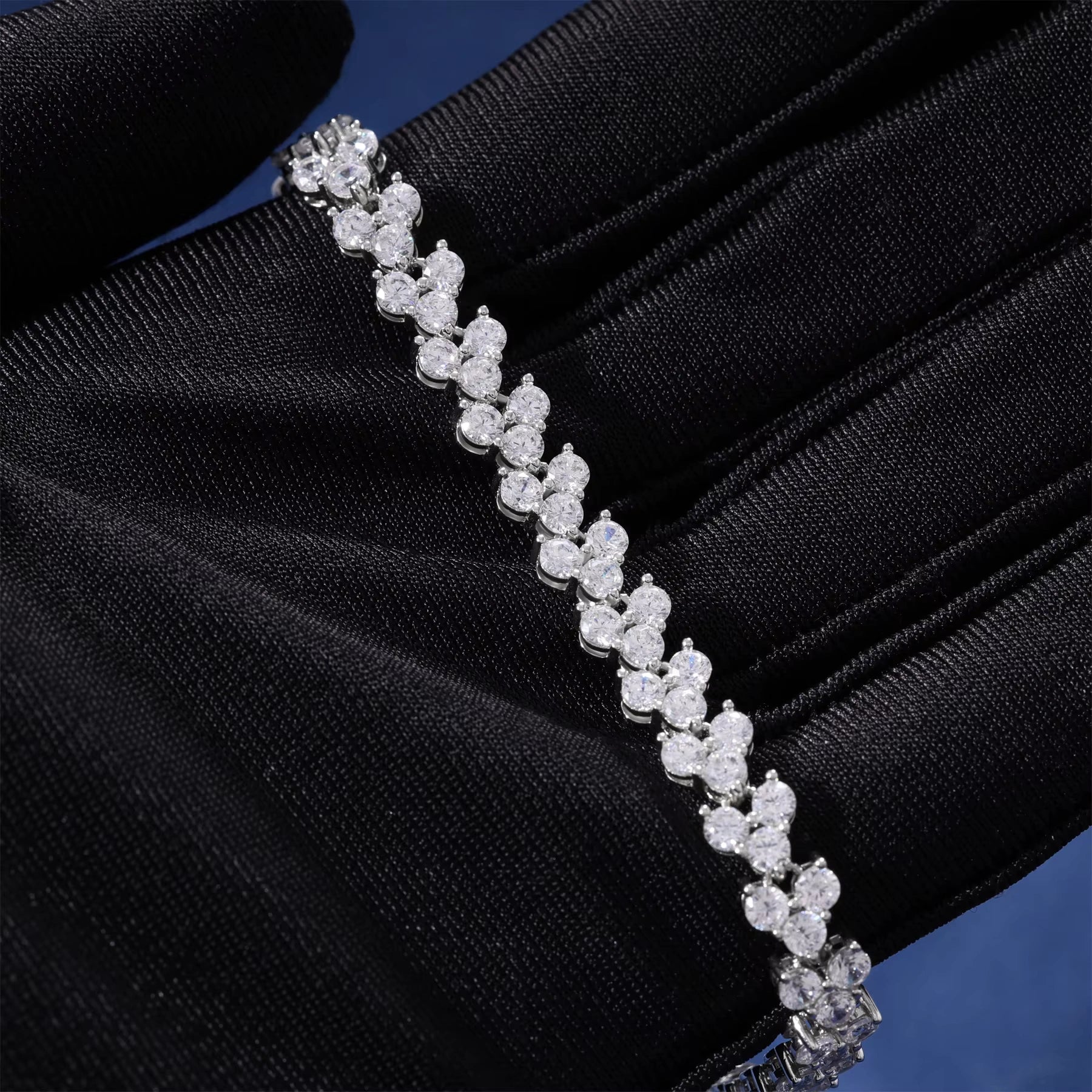 This bracelet features a unique three-stone heart silhouette and intricate floral-cross detailing, offering a perfect balance between romantic charm and street-inspired style. Whether you’re stepping out for a wedding, party, or special event, the shimmering moissanite stones provide diamond-like brilliance that passes the GRA test, ensuring certified quality and lasting impact.