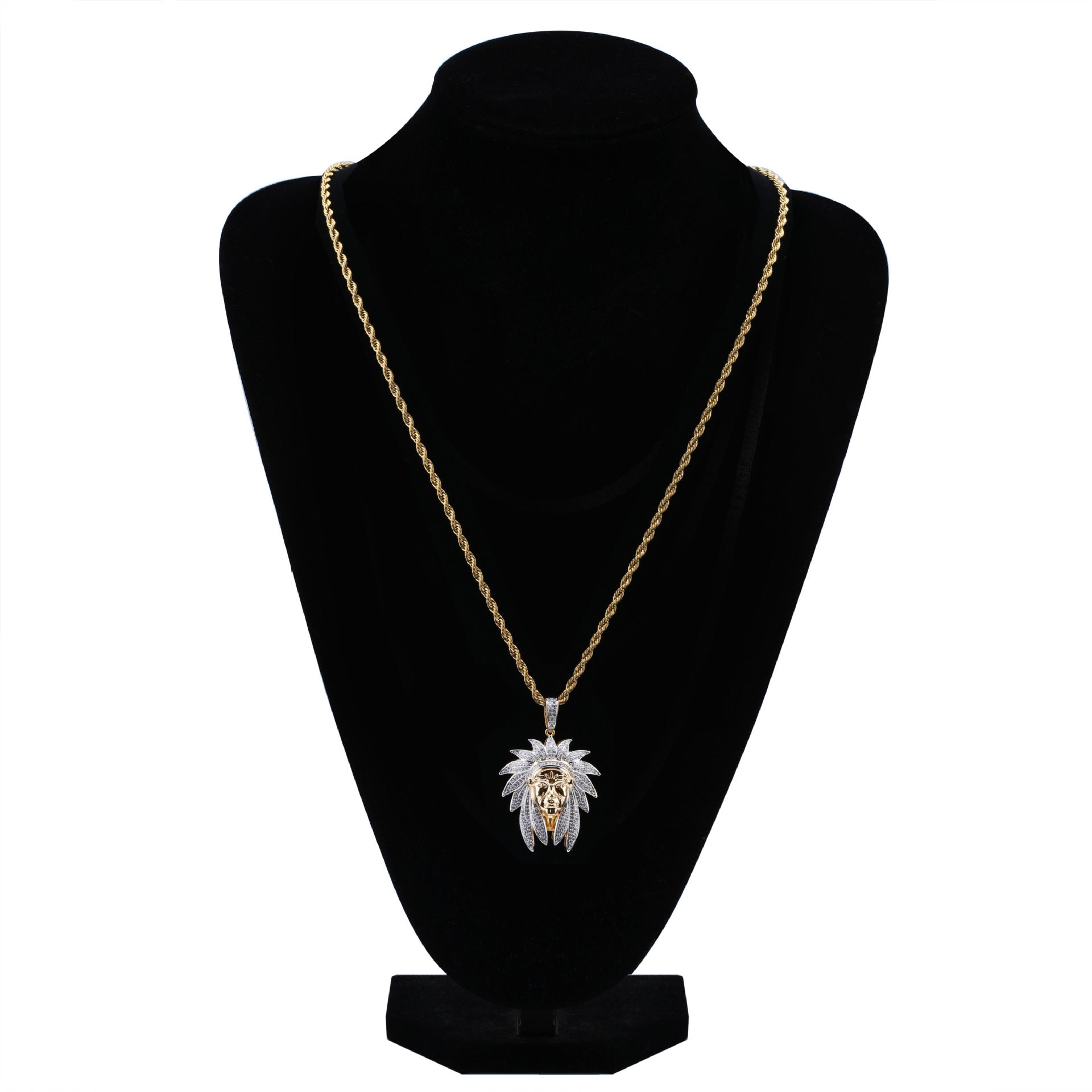 Hip Hop Antique Vintage Indian Chief Chieftain Head Pendant Necklace – Rhinestone Iced Out African Inspired Jewelry