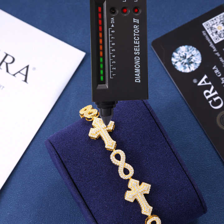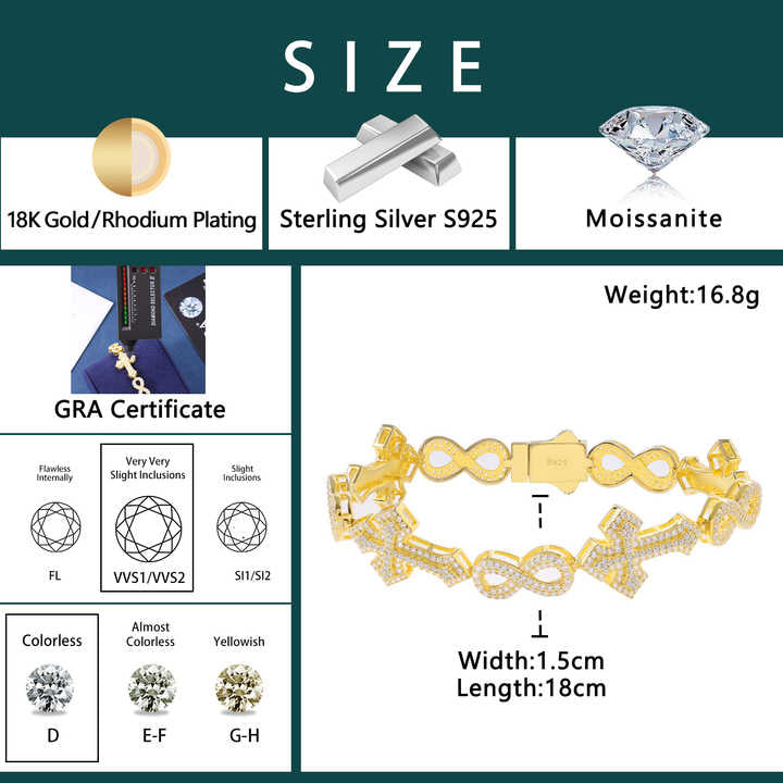 Command attention with this Rapper-Style Iced Out Cross Cuban Bracelet, featuring a bold 15mm width and dazzling VVS D Moissanite stones that pass the diamond tester. Designed in an infinitely crossed pattern, this unique piece combines religious symbolism with the unmistakable luxury of hip hop fashion.