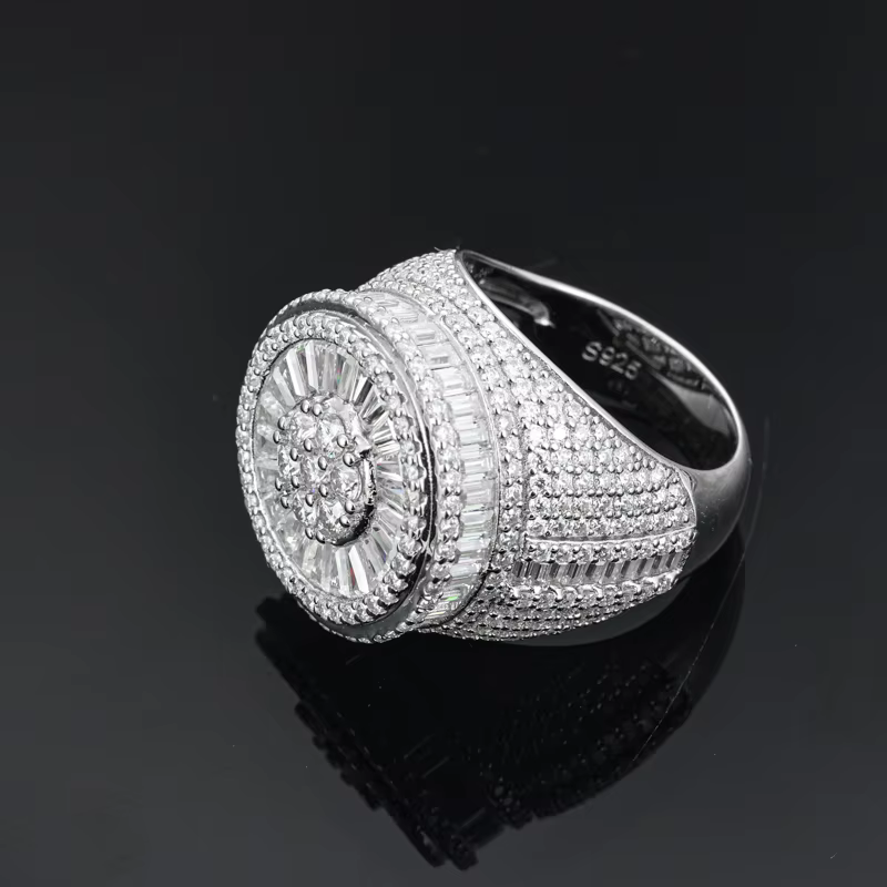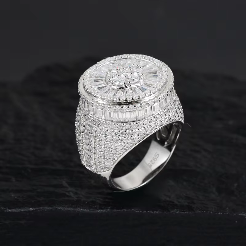 Sparkling Rapper Jewelry for Men – Micro VVS D Round Baguette Moissanite Ring | 925 Sterling Silver Pass Diamond Tester | ICE STONE