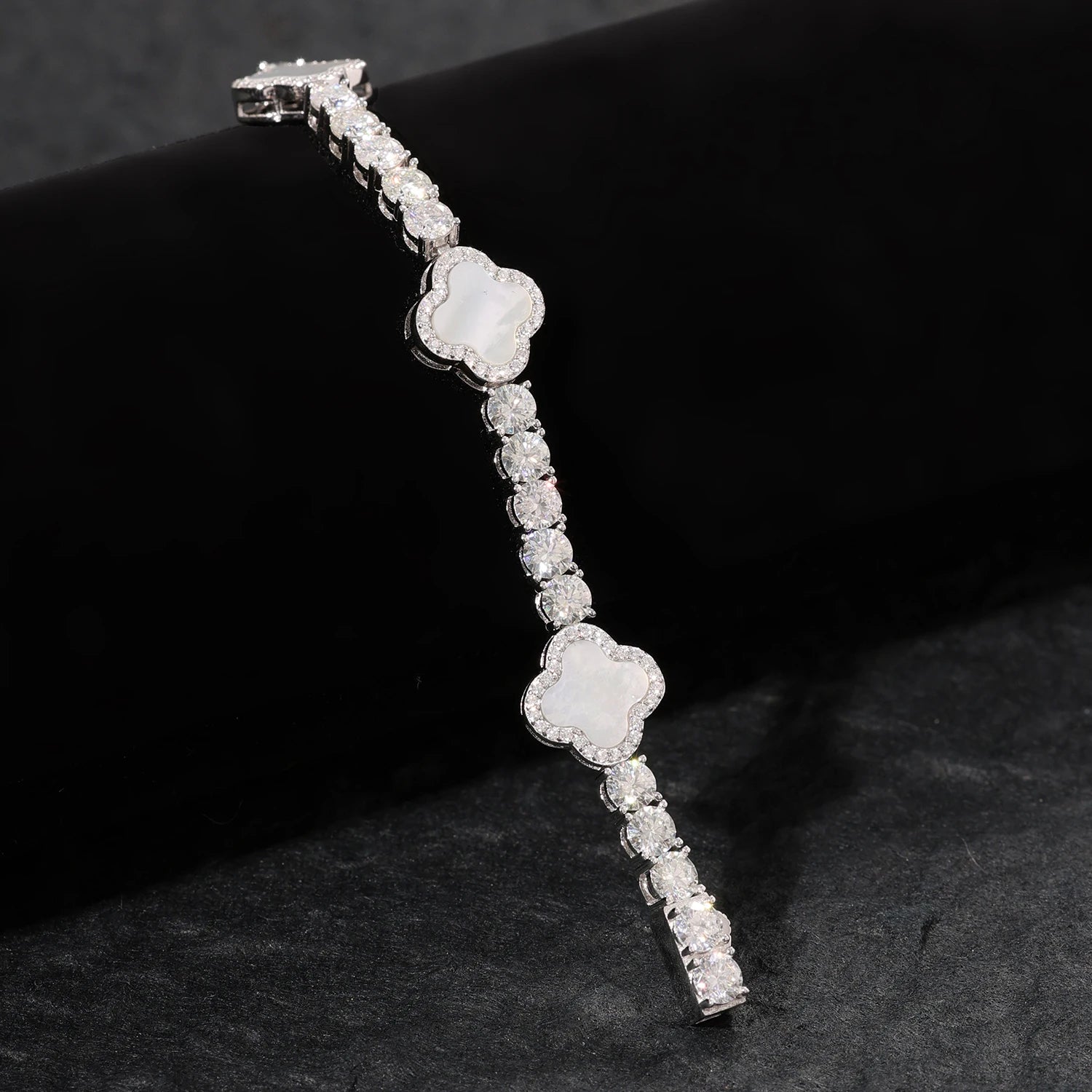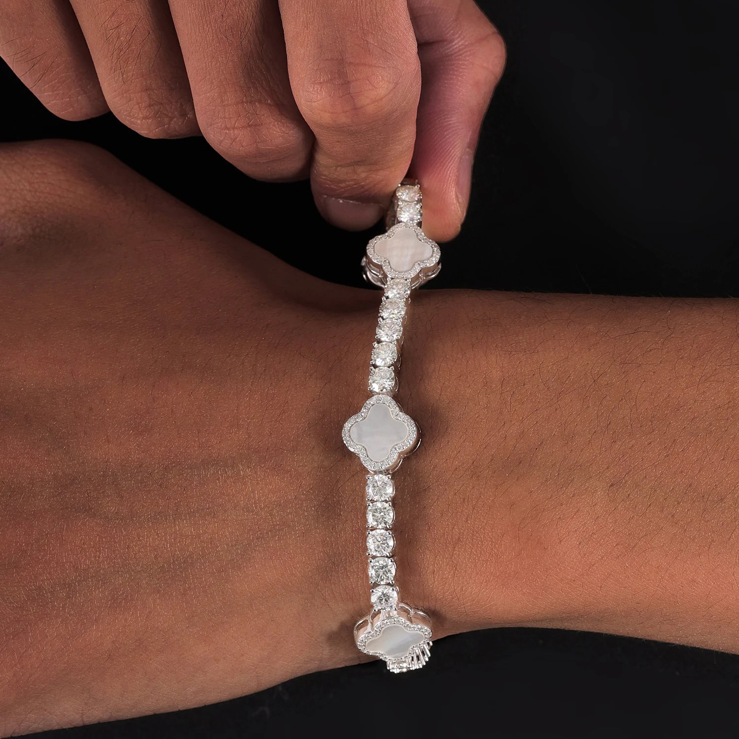 Sparkling Clover Bracelet – VVS D Moissanite | 925 Sterling Silver Hip Hop Jewelry