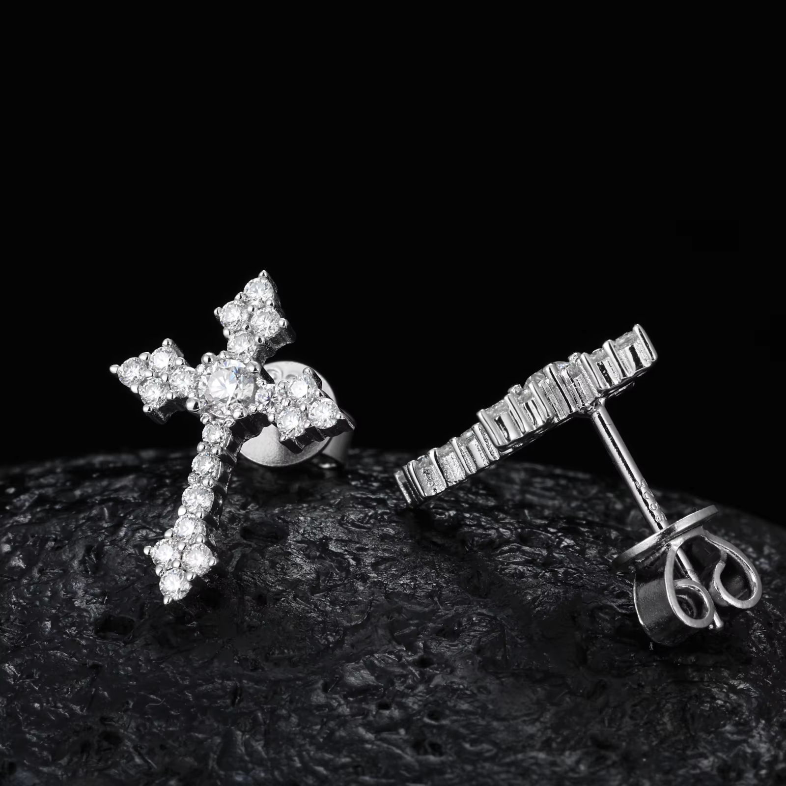 ICE STONE Hip Hop 925 Sterling Silver Cross Earrings – VVS Moissanite Iced Tapered Studs for Men & Women