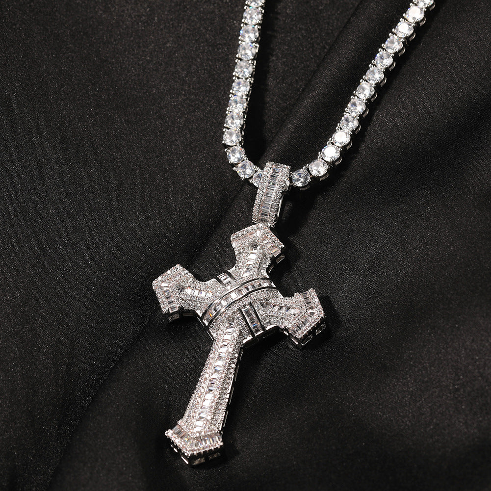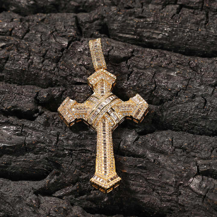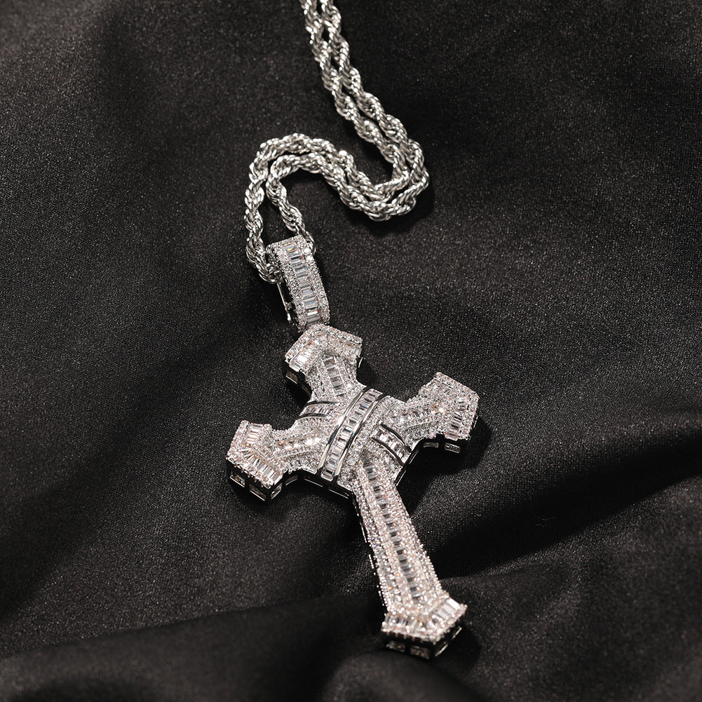Unveil your bold side with the New Arrival White Gold Plated Cross Pendant. This striking iced-out pendant is designed with full 5A cubic zirconia stones, set with precision to provide a dazzling sparkle. Crafted from high-quality brass with a premium 18K gold or white gold plating, the pendant embodies luxury and style with every detail.