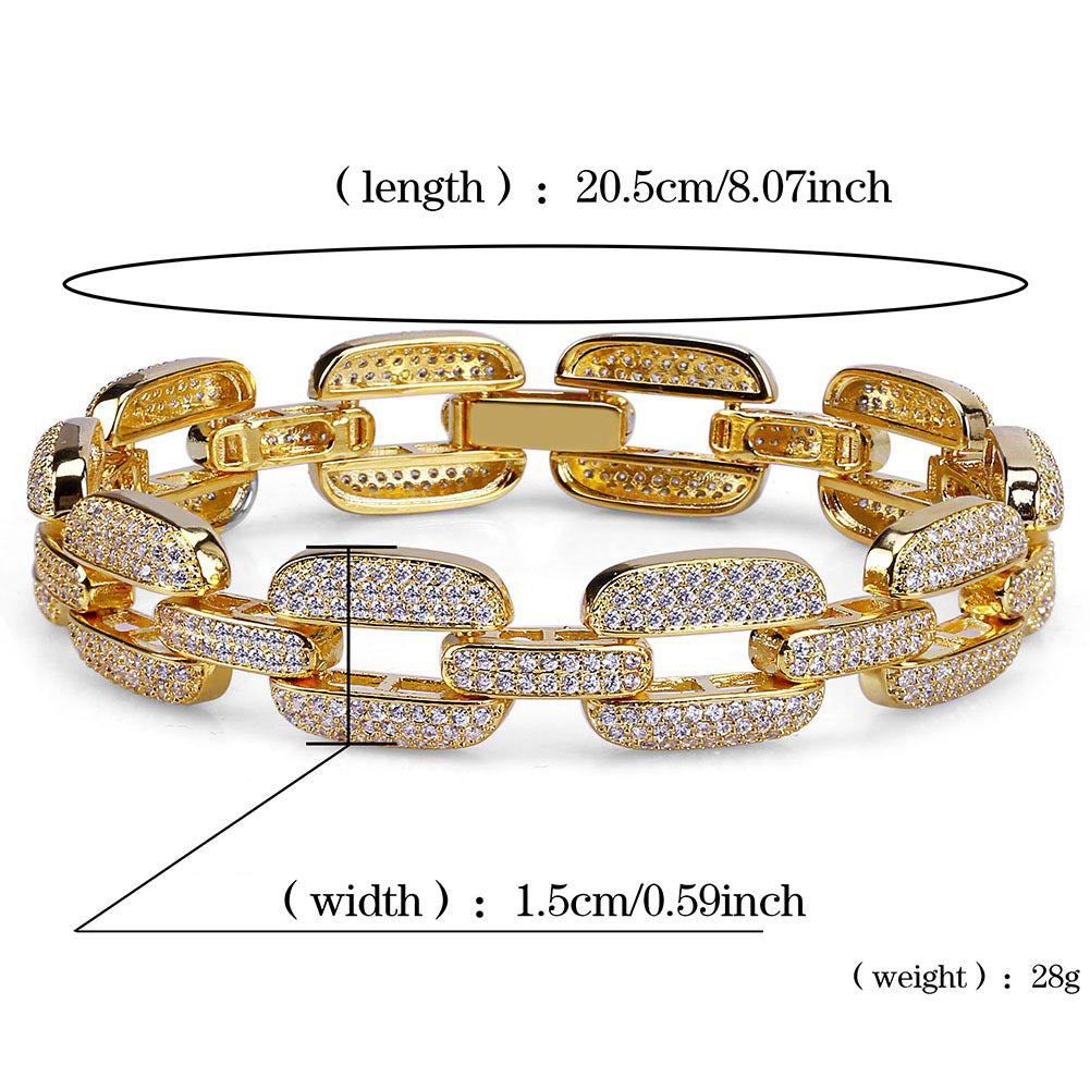 Crafted from durable brass and copper, and plated in rich gold or silver, this bracelet is both bold and built to last. The stones are expertly set using micro-insert technology, ensuring a flawless shine with every movement. Ideal for men and women who love hip-hop fashion, this bracelet takes your wrist game to the next level.