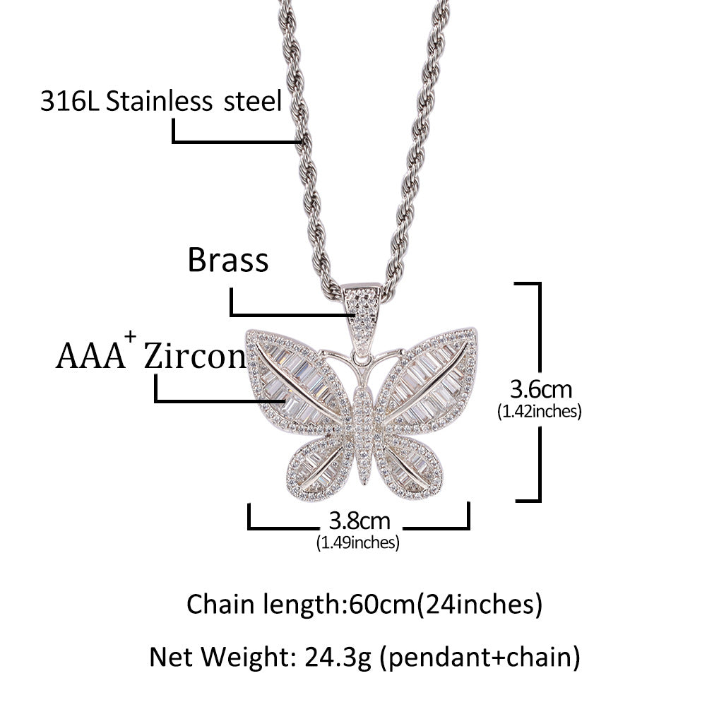 Fashion Women Butterfly Pendant Necklace – Iced Out Zircon Brass Rock Style Gold Plated Designer Pendant
