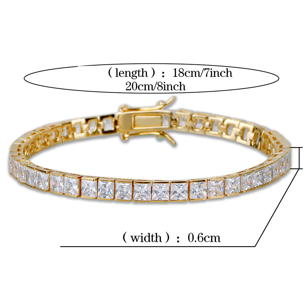 4mm 6mm Temperament Round Crystal Zircon Bracelets – Square Shape Copper Zircon Iced Out Tennis Chain Bracelet Hip Hop Jewelry