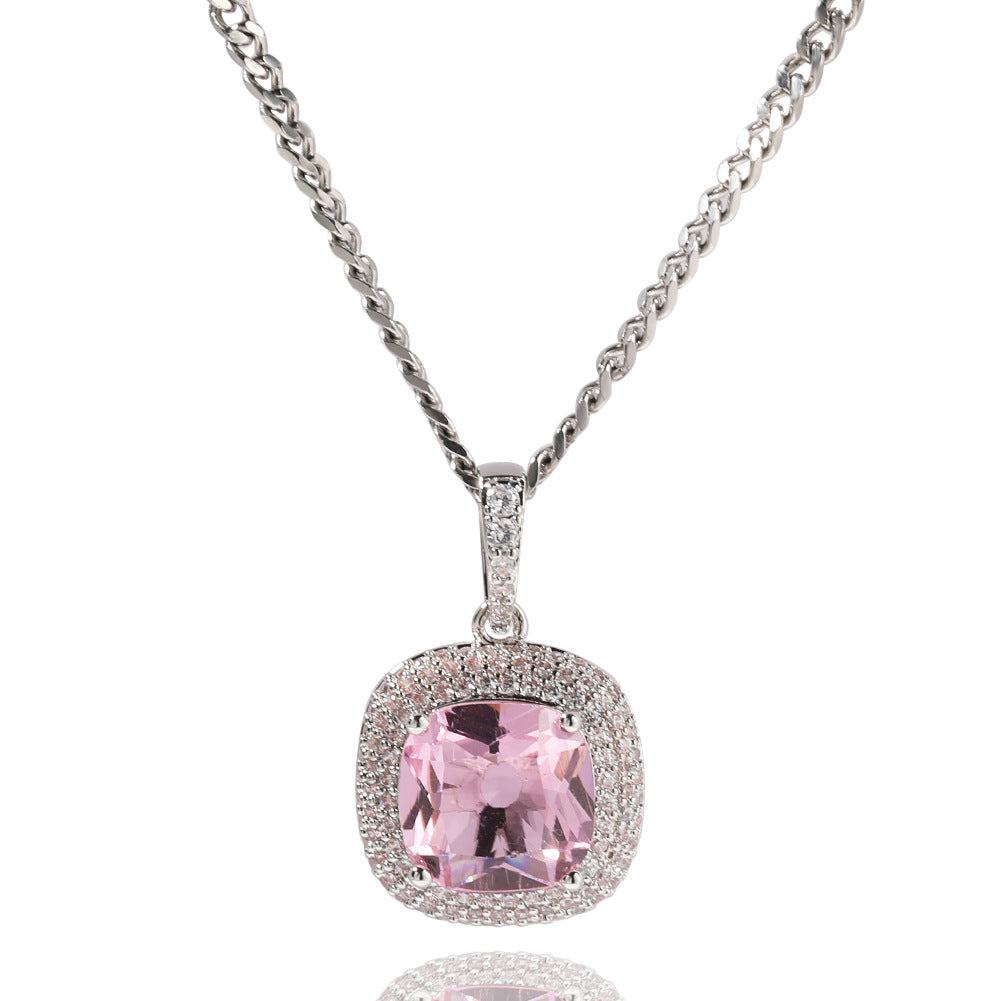 Cute Pink Stone Pendant – 5A Zircon Micro Pave Big White Gold Pink Stone Luxury Small Fashion Iced Out Pendant Jewelry