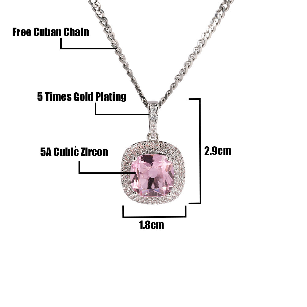 Add a pop of luxury and color with this adorable pink stone pendant, designed for those who love trendy, iced-out hip hop jewelry. Crafted from durable brass and plated with radiant 18K gold, white gold, or rose gold, this pendant features a stunning 5A cubic zirconia stone set with precise micro pave technology to maximize sparkle.